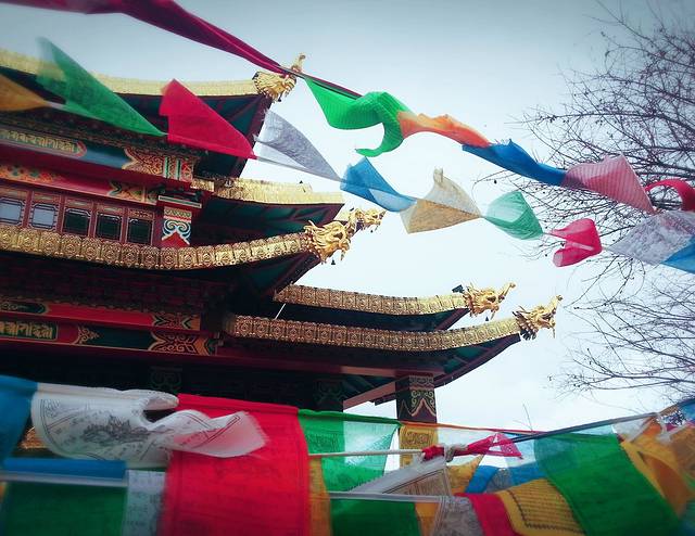 香巴拉是一个隐藏在雪山中的神秘王国,国中居民不执、不迷、无欲。要想进入香巴拉,行者须作精神修行。一旦进入香巴拉,就可以看到四周有双重雪山围绕,如同八瓣莲花。