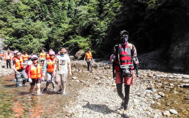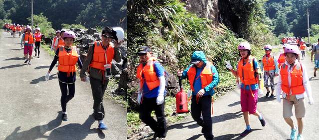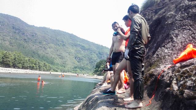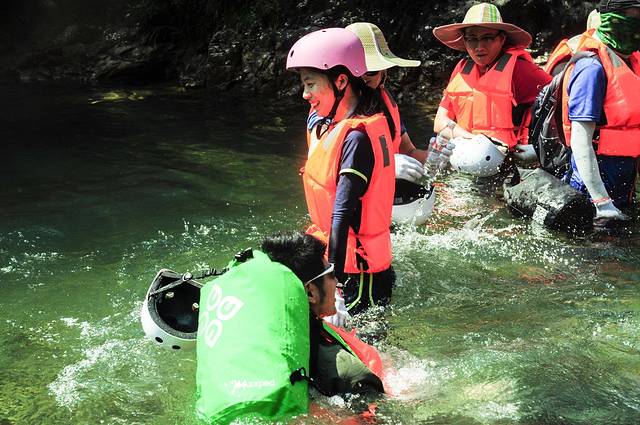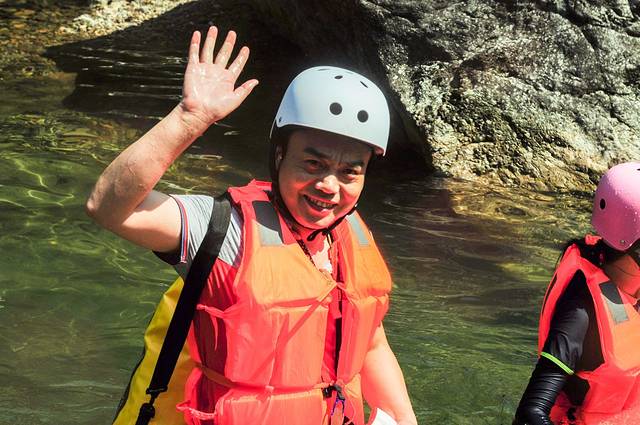 穿戴好救生衣及头盔,峰潮就欢欢乐乐的走向下水点啦。