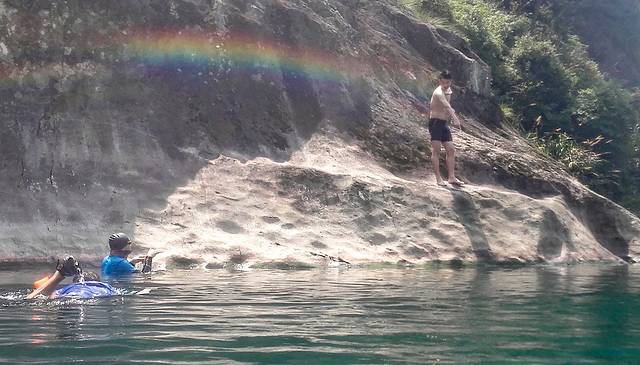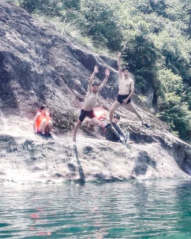 遇见的第一个水潭,已经有人开始游啦。