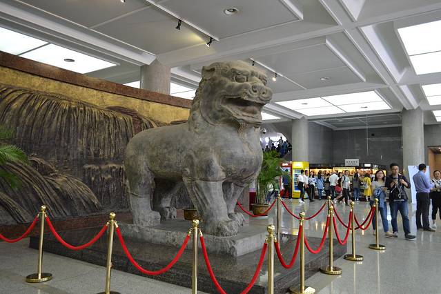 博物馆序言厅位于中央大殿前端,陈列一尊巨大的千年石狮(唐代顺陵石狮复制品),衬以奔腾的黄河和黄土高原巨幅照片,引导观众去领略由黄土、黄河孕育出的古老文明。