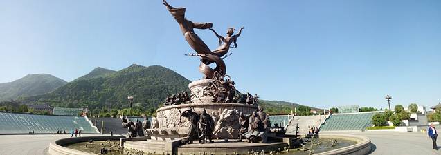 中国首部大型山水历史舞剧《长恨歌》----每晚在此盛大开演。长恨歌演出时间为每晚单场20:30—21:40。以“两情相悦”、“恃宠而娇”、“生离死别”、“仙境重逢”等四个层次十一幕情景,由300名专业演员组成强大阵容,以势造情,以舞诉情,在故事的原发地艺术地再现了这一动人的爱情故事。后面便是骊山,有索道上下。
