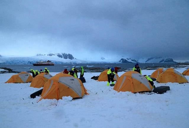 刚刚经历了西风带洗礼的船友们还在恢复模式中,探险队在广播中通知我们即将进入利文斯顿岛,将停泊在月亮湾准备登陆半月岛。第一次登陆,人们都很期待和兴奋,早早地穿好御寒服,认真清理着自己的要携带的背包及装备。