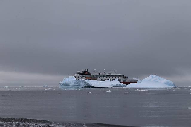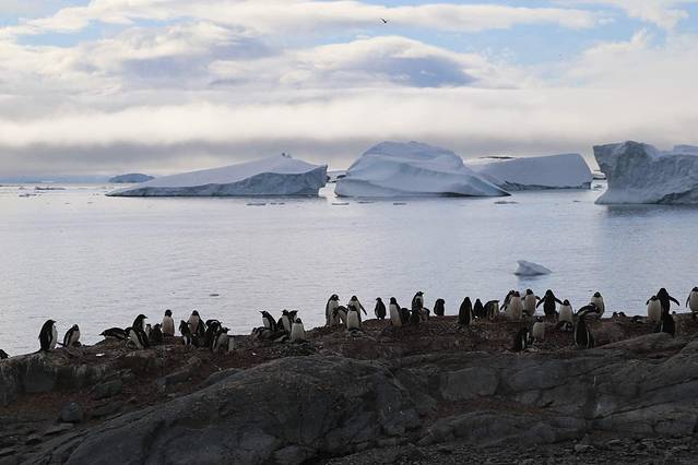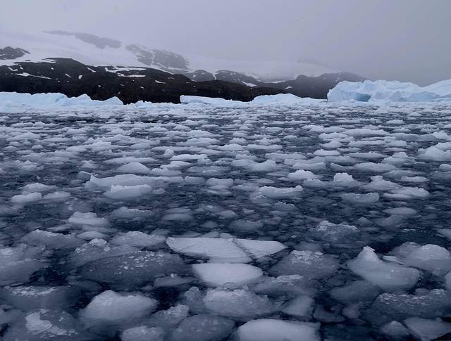 午餐时候海面已经比较平静了,晕船的伙伴这两天也被折腾得够呛,奇怪的是之前看起来病入膏肓的样子,一旦进入没有风浪的海域他们瞬间就恢复起来,现在终于胃口大开。窗外的冰山越来越多,我们的登陆第一站——半月岛也就越来越近了。