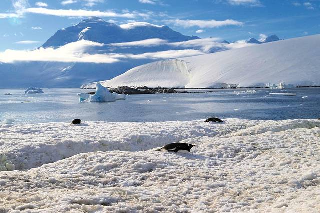 威利米纳海湾冰山众多,风光壮丽,不时有冰川崩裂之声。鲸鱼喜欢在这里觅食,因此此海湾历史就是捕鲸船喜欢来的地方。