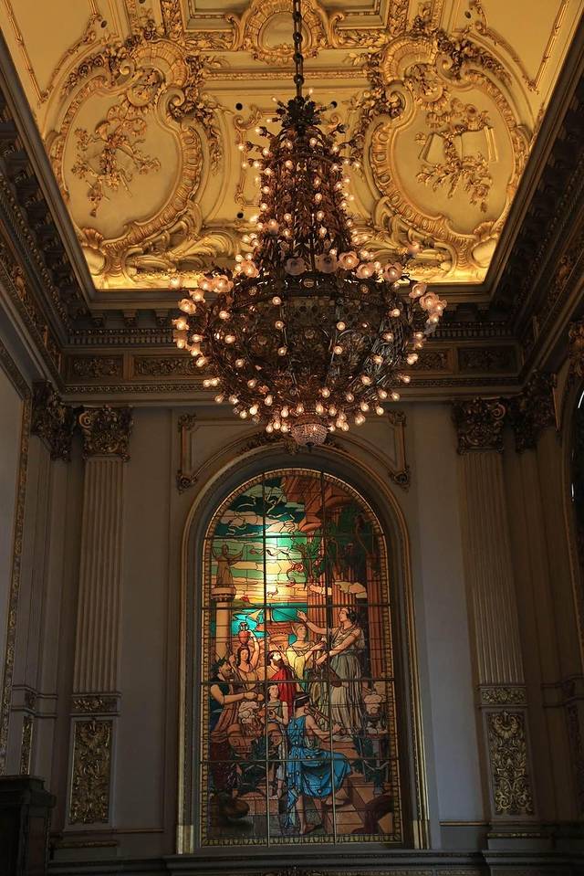 欧式的超大吊灯是剧场公共区域的主要光源,在周边精美的金色雕花墙面的映射下,一片辉煌。