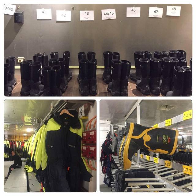 九点,开始试穿登陆靴,各自选好合适的尺码后按房间号归类,以后每次的登陆都固定用这双登陆靴了。我横跨了几大洲几大洋不远万里背来的并占用了行李箱很大部分空间的冰熊雪地靴恐怕派不上用场了。