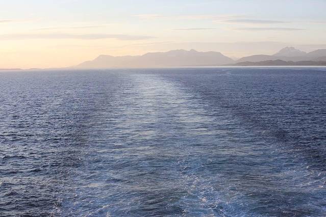 傍晚六点夕阳西下,我们搭乘前进号从乌斯怀亚的港口准时启航出发。轮船先得沿着狭长的比格尔海峡航行四十海里,也就是说最快四个小时后我们即可到达德雷克海峡,这样算起来大约晚上十点左右前进号将进入传说中的西风带海域。