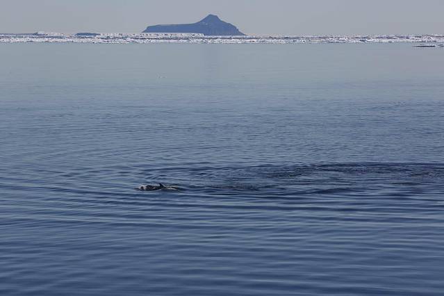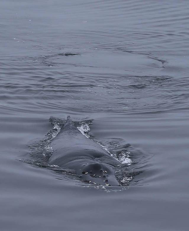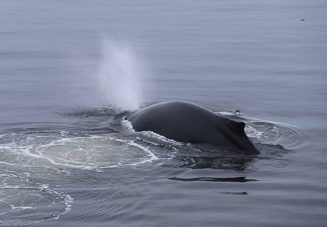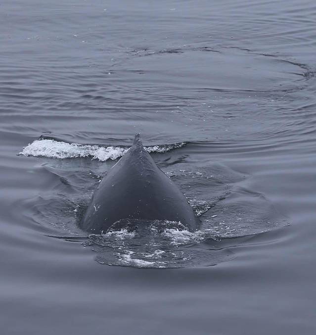 今天甲板上晒太阳很暖和,并不需要把自己裹成狗熊的样子。坐在船头看鲸鱼游过。