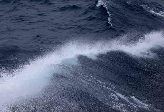 上午的回笼觉错过了午餐,带上开水壶跑到行驶在魔鬼西风带的船甲板上泡面吃是今天最惬意的事情(中国方便面味道太大,怕引起国际公愤)。同来的伙伴们都卧倒不起,不敢吃也不敢喝。我这般自得其乐恐怕不是太好吧。罪过罪过。