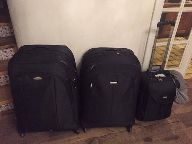 终于在出发一小时前整理好了这些天一直在倒腾的行李,临去机场的时候电话里传来黑娃儿无助的噩耗:贪婪啊,行李箱被他硬生生地胀爆了。哈哈哈,听到此消息大家似乎都没跟着他着急,反而有些幸灾乐祸的笑爆了。更为好笑的是他说他由此而“吓”出一身冷汗,大半夜哪里去另找行李箱呢?被撑破了的箱子里的东西是被他赤手“捧”上车的。还好的是他最终还是在就近朋友那里借到一个大箱子,六人小分队一个不少的在双流机场汇合了。