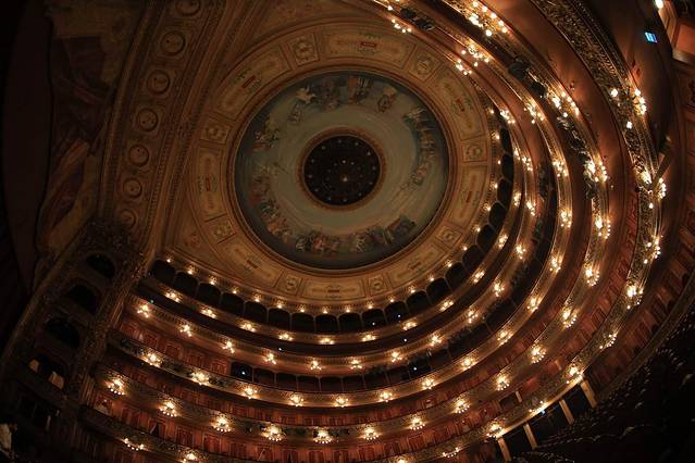 舞台是世界上最大的,长35.5米,深34.5米。大厅穹顶上有阿根廷著名画家拉乌尔•索尔迪画的51幅有关音乐舞蹈的绘画。
