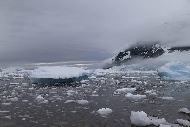 这是南极最常见的天空的颜色,整个天空灰色为主基调。