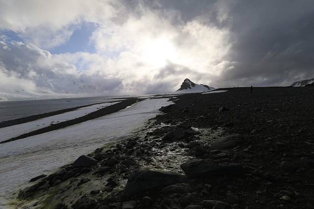 下午登陆皮特曼岛的时候天气情况依然不佳,天空飘着雨雪,还在风不大。登陆上岛雪下得更大了,想到傍晚我们还要在此露营半路上也就打道回船上了。