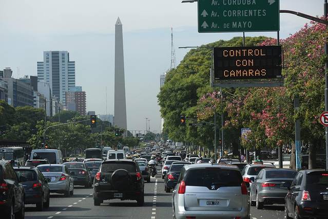 车道被两条隔离带平均隔离,中心部分是来回四条公交快速通道,剩下的12条道是社会车辆通道,每个十字路口都有红绿灯包括行人红绿灯,无论是车辆行使还是行人穿过,都十分方便。大道下层就是布宜诺斯艾利斯的地铁。总之一句话,这里的交通设施非常完善发达。