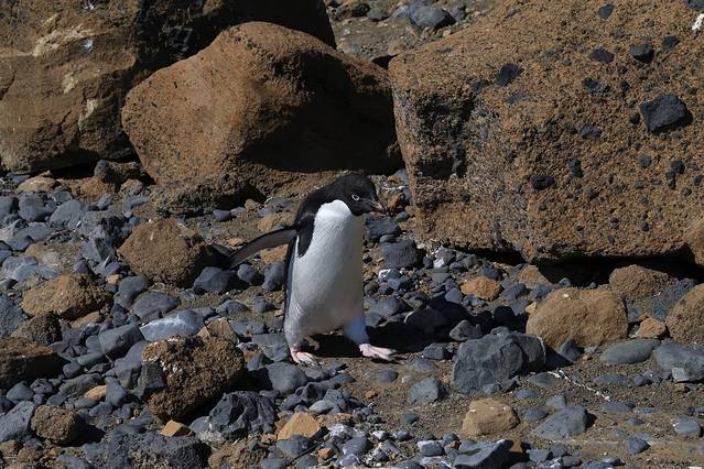 在黄色陡崖最多的企鹅就是这种叫做阿德利的企鹅。它是南极最常见的一种企鹅,也是最萌的小企鹅。