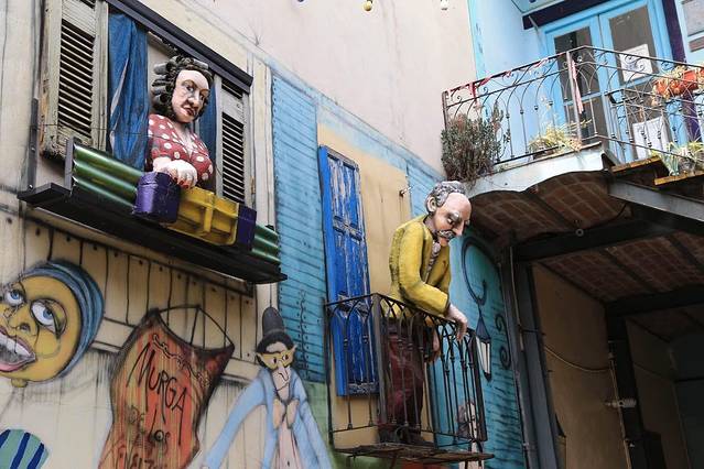 博卡区原本是布宜诺斯艾利斯的贫民区。从前大批意大利、西班牙的贫民为谋生计来到这里,用铁皮搭建成一座座简陋房屋存身。他们并不缺乏创意,用讨来港口里漆船剩下的油漆将自己搭建的简易铁皮屋子外墙、屋顶涂上颜色。这里成了布宜诺斯艾利斯色彩最丰富的区域。
