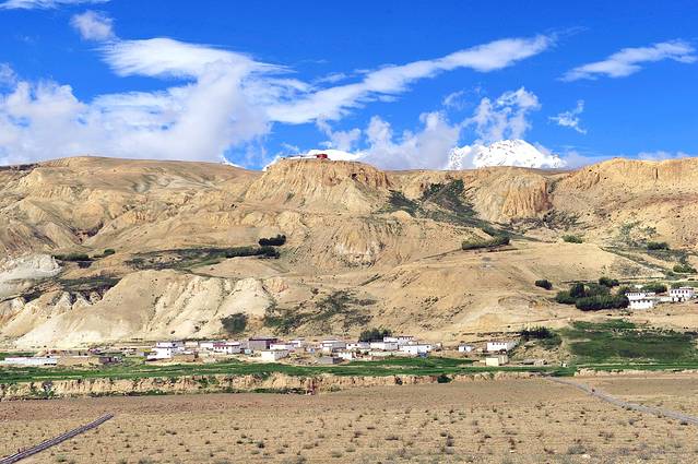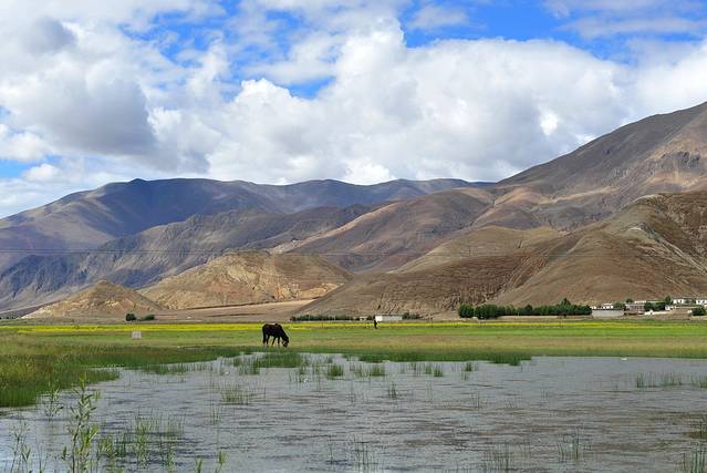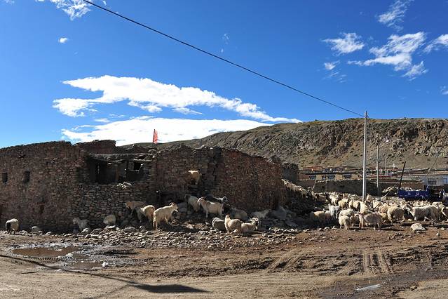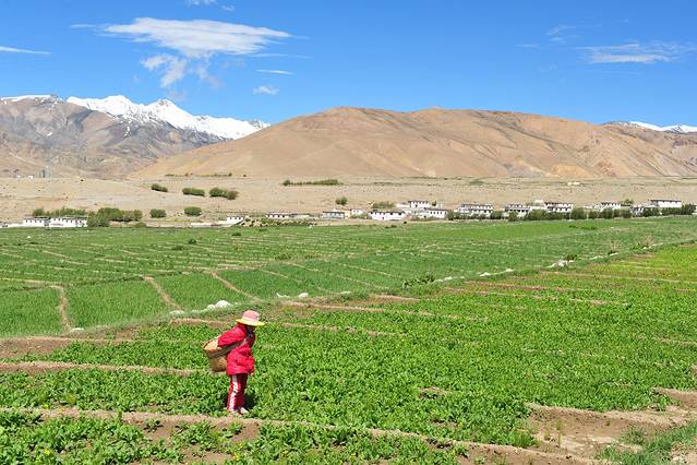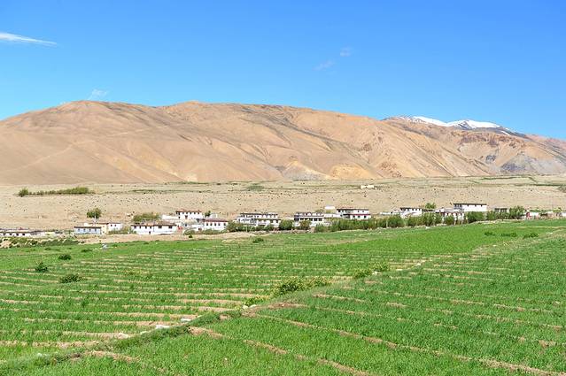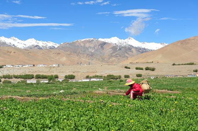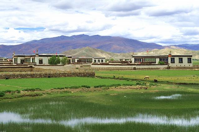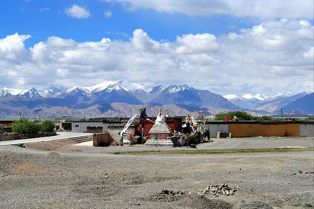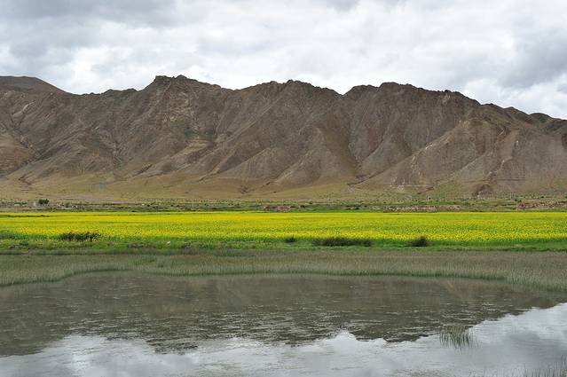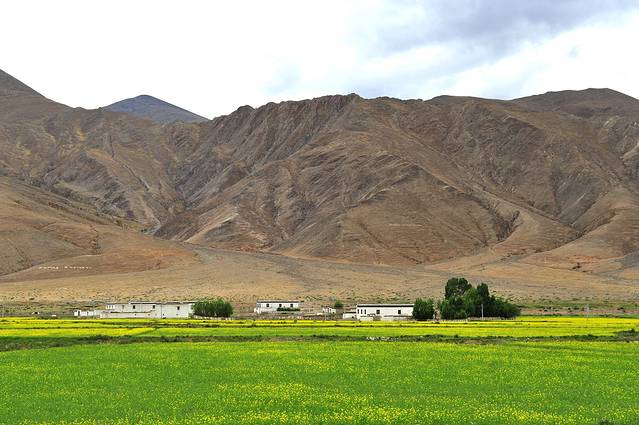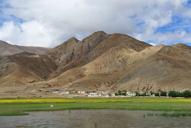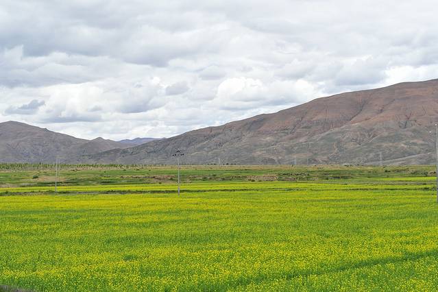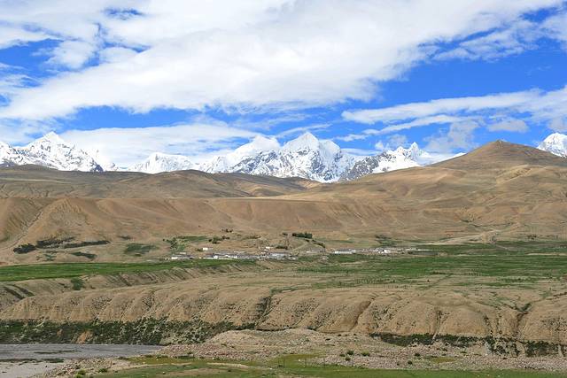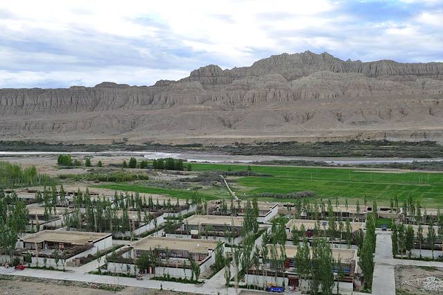计划行程今天是到定日,次日前往珠峰大本营、再到聂拉木、樟木口岸、吉隆沟经萨嘎走阿里中北线到措勤,再经小北线到尼玛,由东向西穿越阿里大北线,再到日土返回,经G219、沿途去扎达、普兰回到G318返回拉萨。可我们到达查务村G318和G219的岔路口时,得知因地震由此前往聂拉木的G318依然交通管制,不能通行,要等到7月1日才取消管制。我们不能等5天,只有继续前行,回程再做打算。一路拍过查务村田园风光,于当晚到达桑桑食宿。
