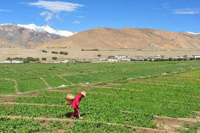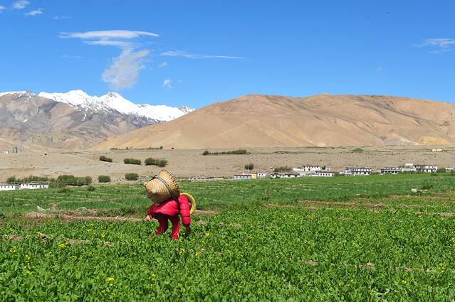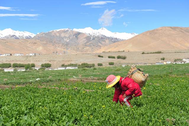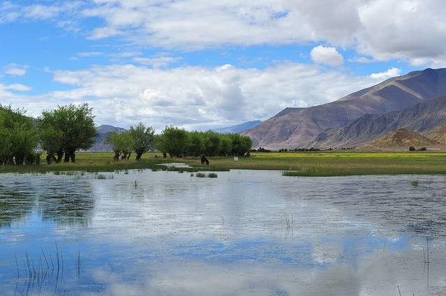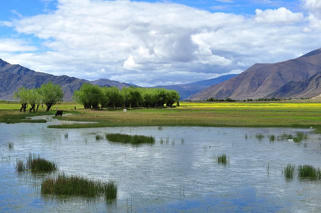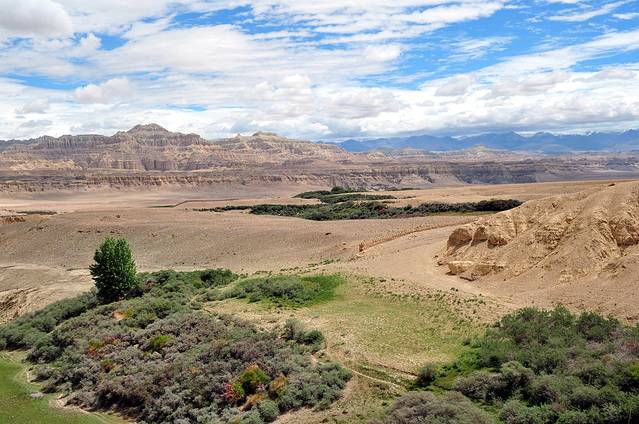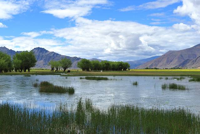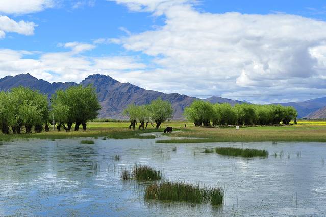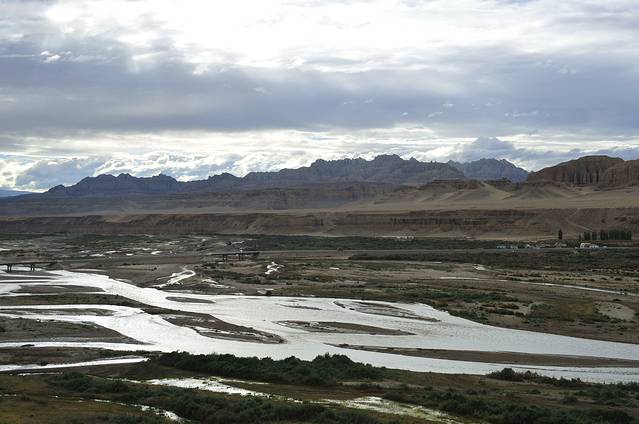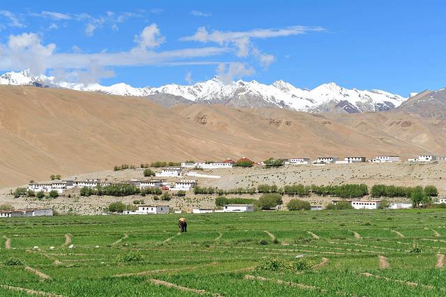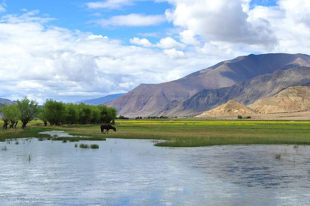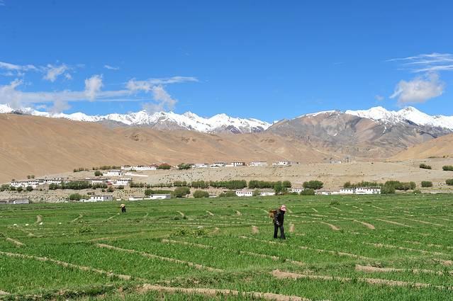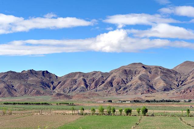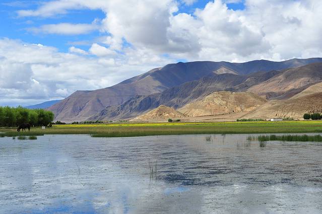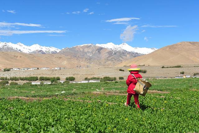 计划行程今天是到定日,次日前往珠峰大本营、再到聂拉木、樟木口岸、吉隆沟经萨嘎走阿里中北线到措勤,再经小北线到尼玛,由东向西穿越阿里大北线,再到日土返回,经G219、沿途去扎达、普兰回到G318返回拉萨。可我们到达查务村G318和G219的岔路口时,得知因地震由此前往聂拉木的G318依然交通管制,不能通行,要等到7月1日才取消管制。我们不能等5天,只有继续前行,回程再做打算。一路拍过查务村田园风光,于当晚到达桑桑食宿。