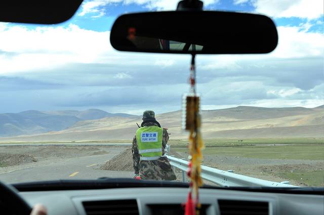 检查登记完,继续前行,照片中左边这位来检查车辆和行李。