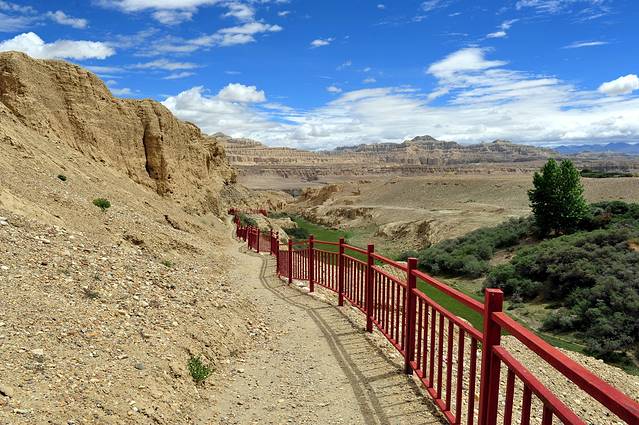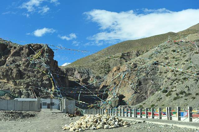 离开普兰,沿着S206省道沿路返回。后仔细查阅资料,同时整理照片时才发现,出城时在道路左侧拍摄的山体照片才是达拉喀城堡、贤柏林寺遗址;半山腰的是悬空寺和古宫遗址,遗憾没有去到这些地方,也没有去多油村里的古老白塔,这里曾经发生过一场惊天动地 的战役——普兰战役。