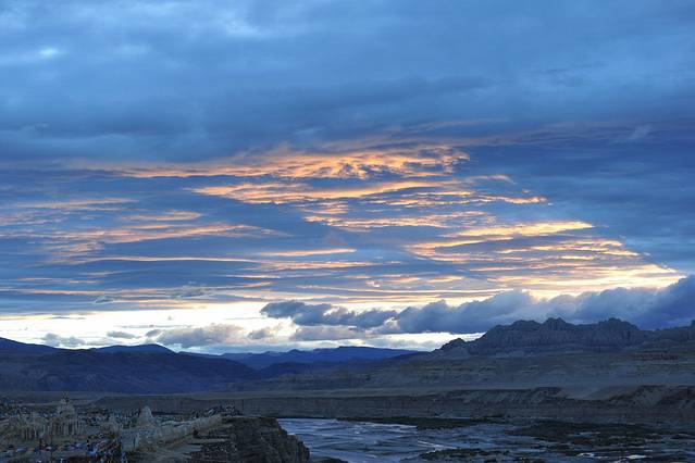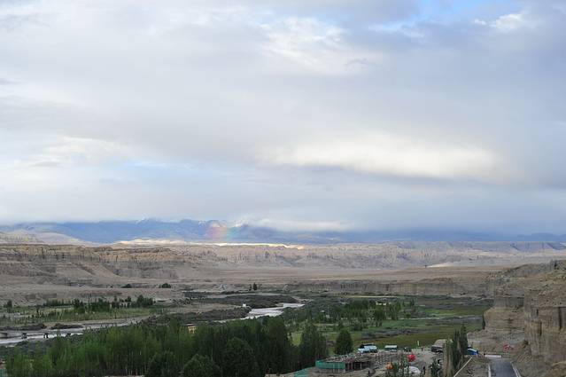 赶到古格遗址,没有看到期望的落日景象, 远处的象泉河谷中,一缕彩虹飘在低空中。