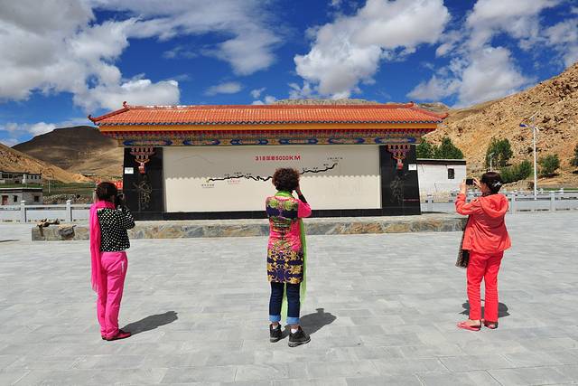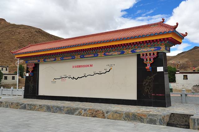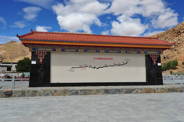 到达G318国道5000公里纪念碑处,网上以前看到不是现在这个样子,已经重建过了。