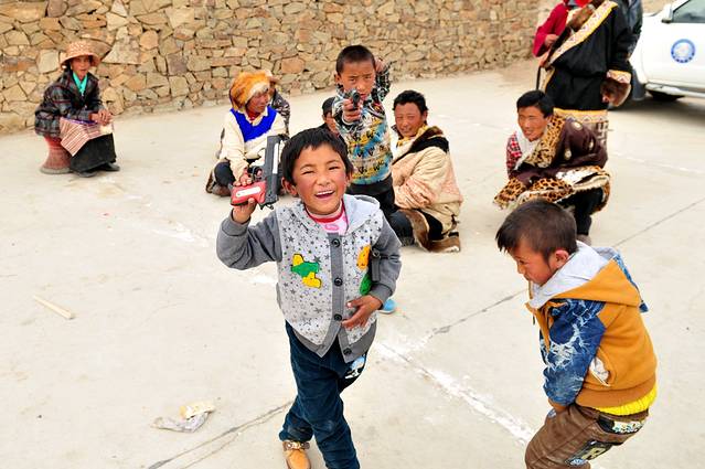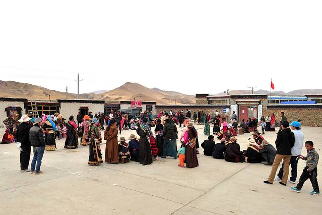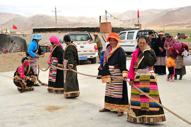 经过拉藏乡久嘎村,刚好在路边的村政府门前举办拔河比赛,我们停车前往。