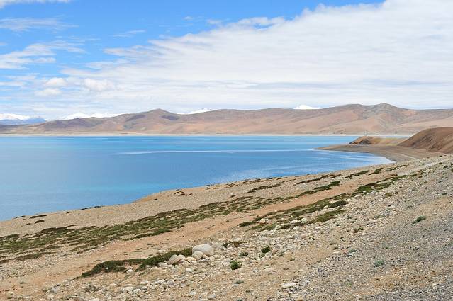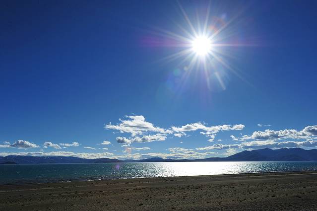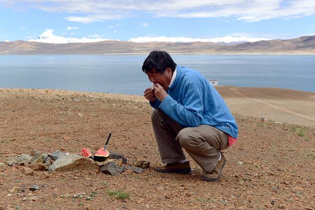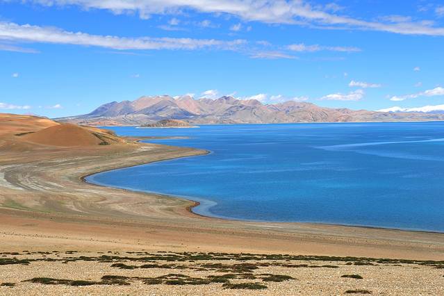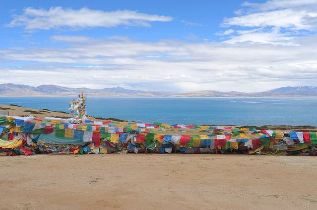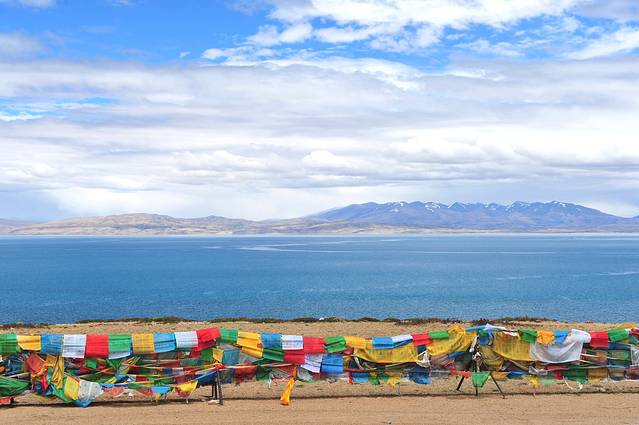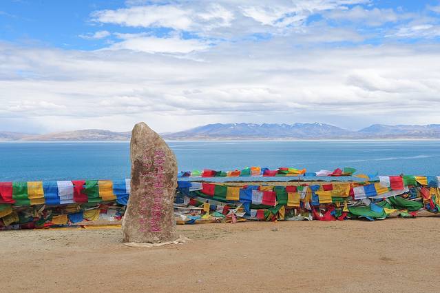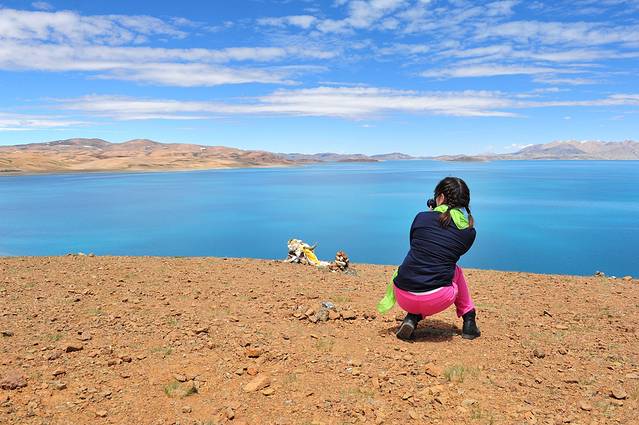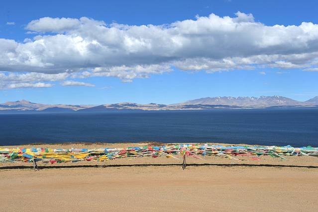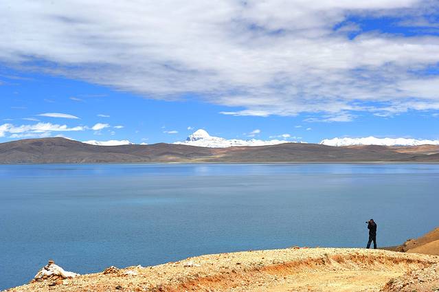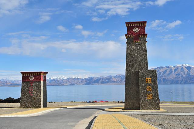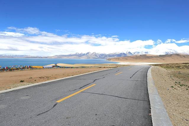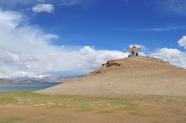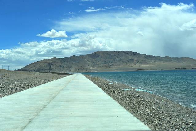 回到省道,沿路拐过一个弯,是公路里圣湖最近的地方。这里有一个观景台。