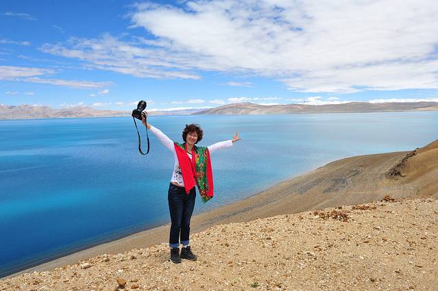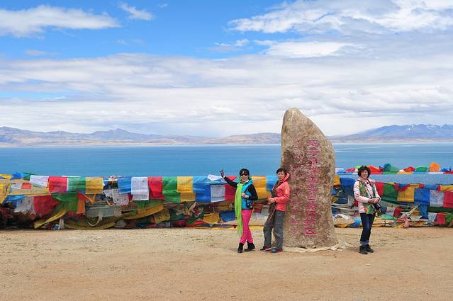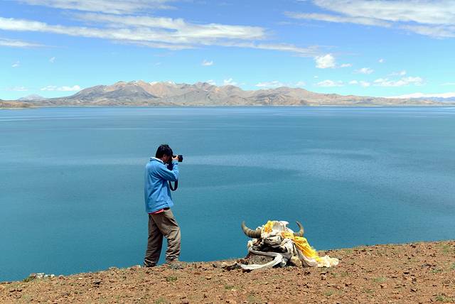 沿着前面小伙子说的上山小路上到坡顶,这里是近观圣湖和远观那木纳尼峰的绝佳地。