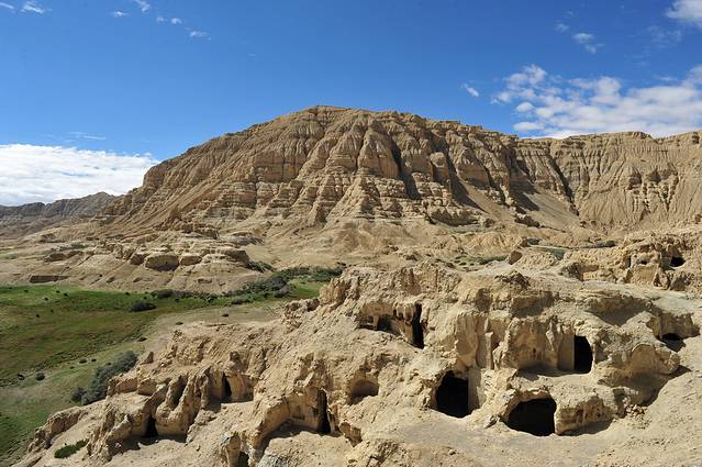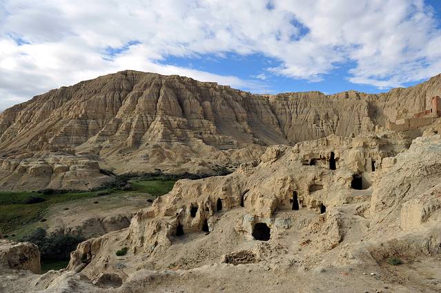 藏尸洞口,关于藏尸洞网上众说纷纭、莫衷一是,很多记述相同的说洞内有三个洞室,三层无头干尸,因气候干燥,尸身数百年未曾变化,也没有臭味,而是充满了难以形容的怪味。里面都是古格灭国时被斩首的人,前面是僧侣,中间是将士,最深处是男女老少的民众。但尸体来源各有说法。