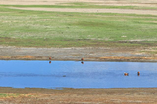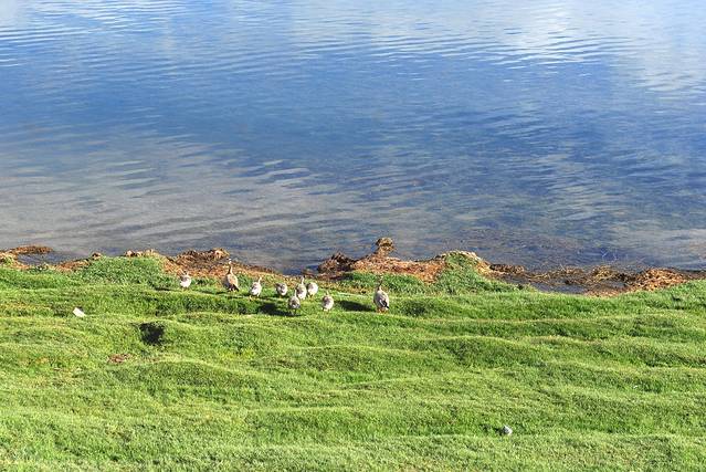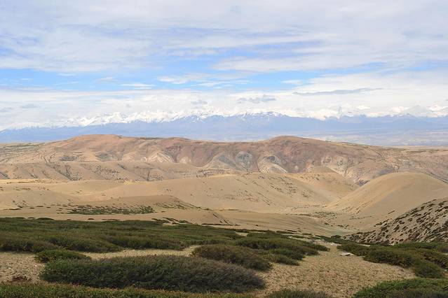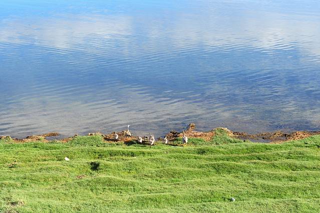 我把车开到路基下,向着湖面方向开去,沙土越来越软,担心陷车,只好停车徒步走向湖边。
