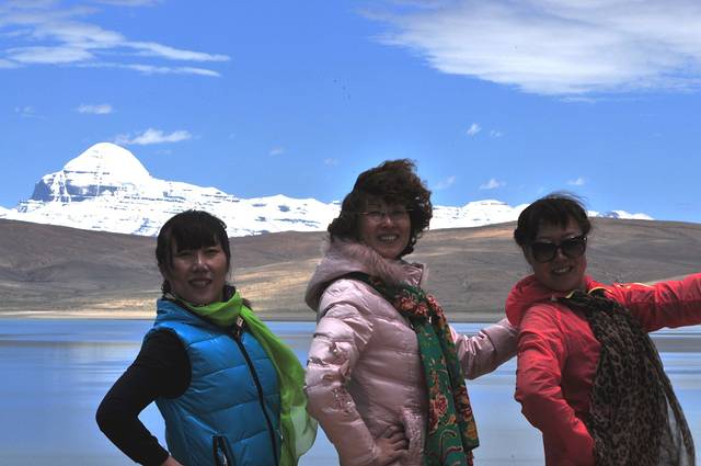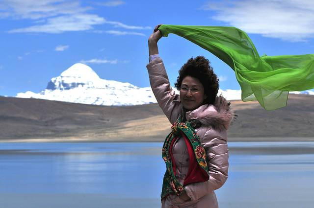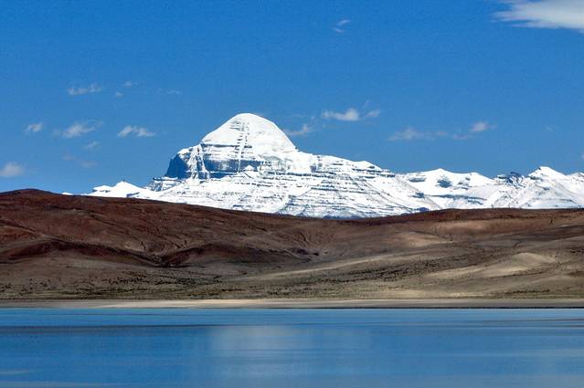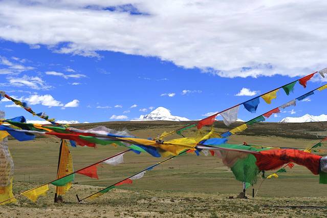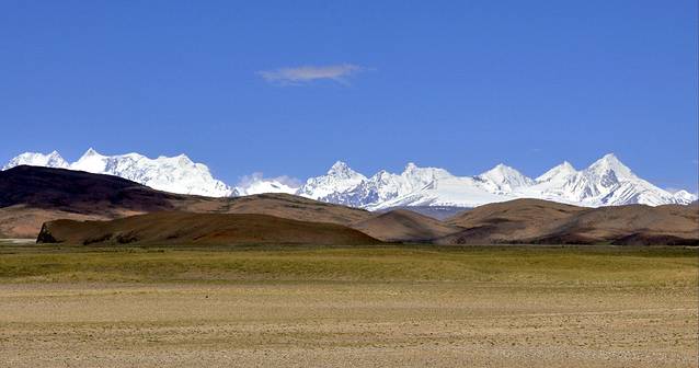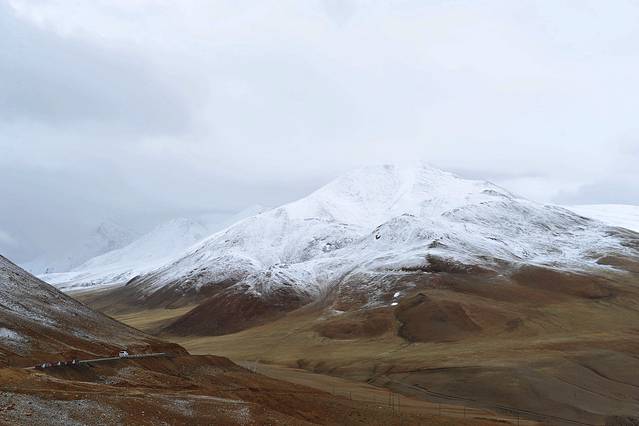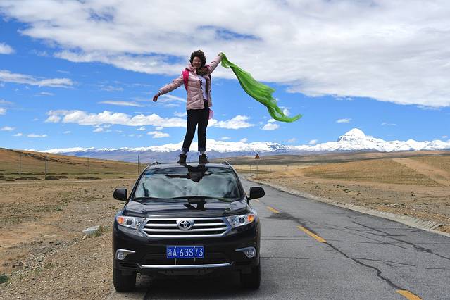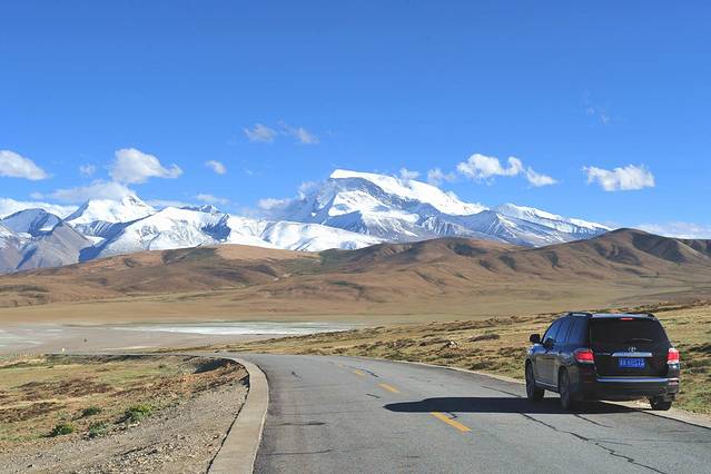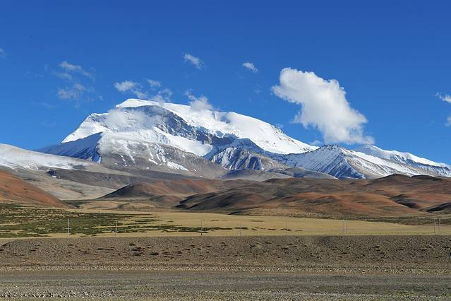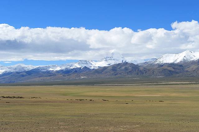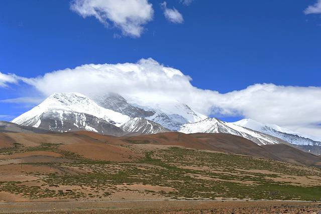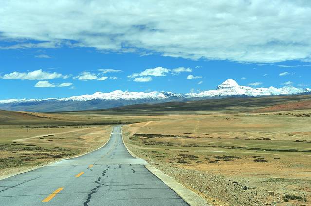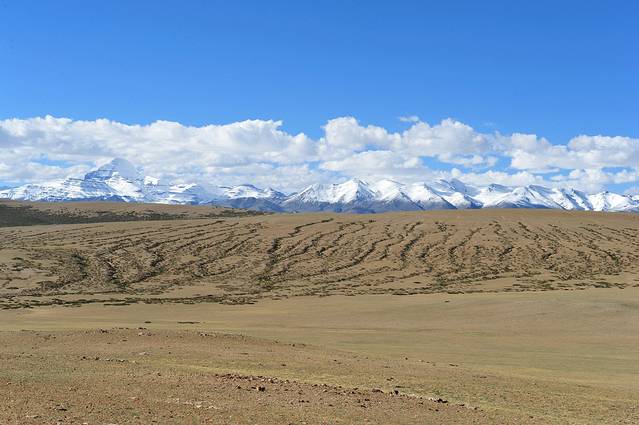 回到公路继续前行,公路右前方的冈底斯山脉的最高峰,冈仁波齐峰忽隐忽现。