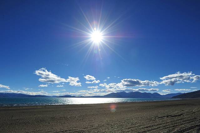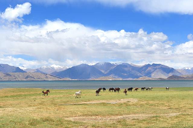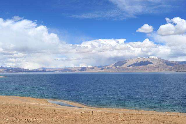 早饭后再次沿班公湖畔的G209向西前行拍摄,光线很好,昨天傍晚拍摄过的地方,今天又呈现出不同的光照和美景。经过昨天和今天游览拍摄,一直到行摄西藏结束,班公湖的美景长时间地印在脑海里。我认为班公湖是西藏最最漂亮的湖泊,也可以说是我多年来行摄见过拍过的最漂亮的湖泊。上传这些照片时,是我陪亲友自驾新西兰南岛刚刚回来,想到新西兰南岛众多漂亮的湖泊,没有一个可以与班公湖媲美,完全不是一个档次。也可以说,新西兰的众多漂亮的湖泊,都不能与西藏的众多湖泊媲美。同时说明一下拍摄班公湖全貌美景的经验是,前一天下午到达日土后,前往拍摄班公湖日落前后的美景,返回日土住宿,第二天晨起继续沿G209边行边拍,一直过岔路口前往乌江村后,再继续前往中印边界口岸途中,拍摄用途美景,到达口岸后返回途中,拍摄夕阳照射下的乔戈里峰方向的美景,日落后再返回日土食宿。