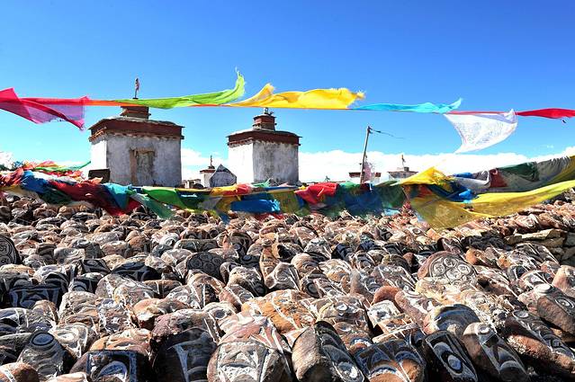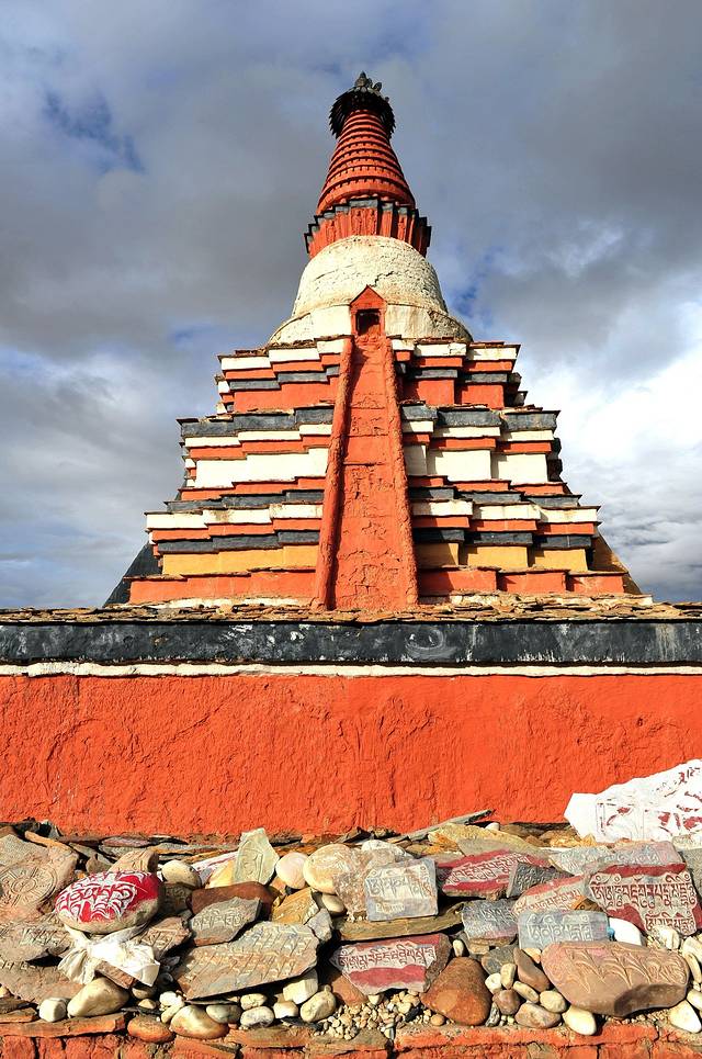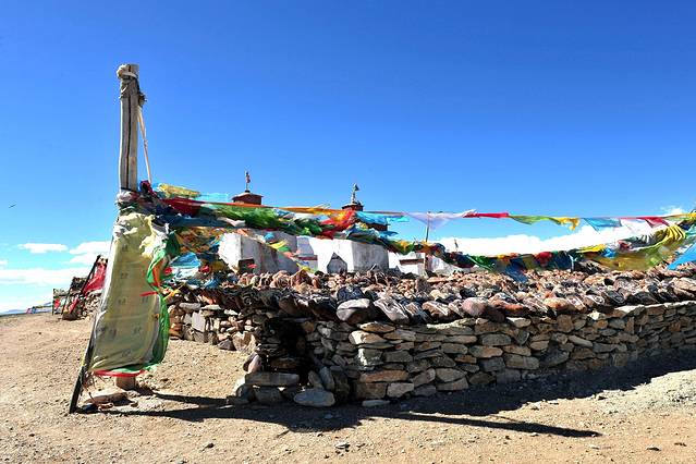 我们所在山坡最高处,有一处白塔群,几座白塔伫立在玛尼石堆中。这里也有几张照片是第二天上来时拍摄的。