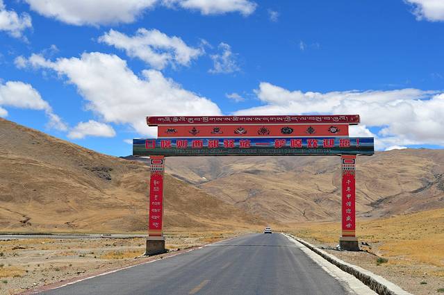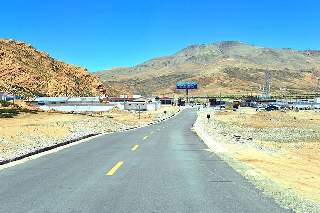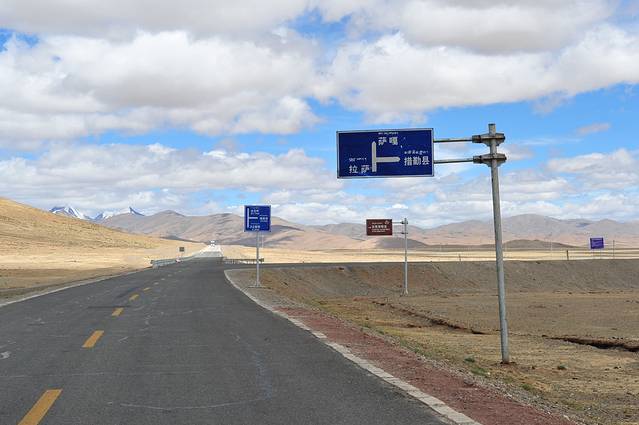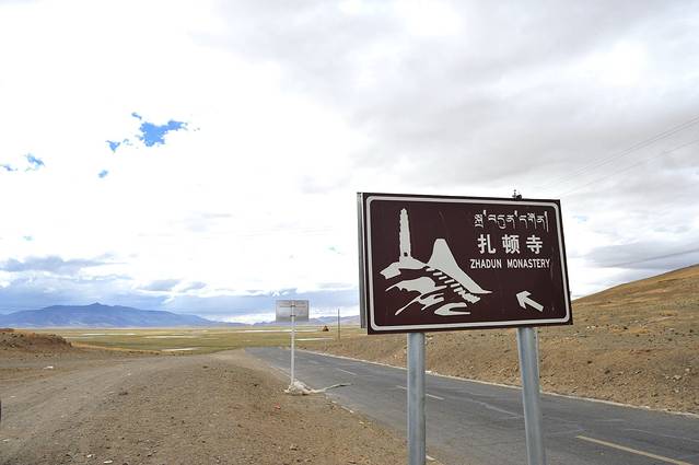 到达G219国道S206省道的交叉路口,我们将右拐沿着S206省道前往措勤。时值中午,我们在路口停车休息吃饭,吃饭时,我下车溜达,看到路边一块公告牌说现在前往措勤