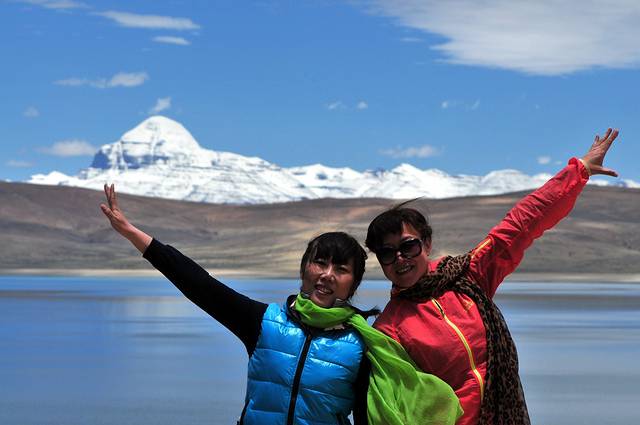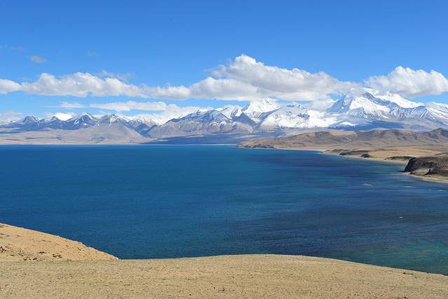 长焦拍摄鬼湖为前景的岗仁波齐峰