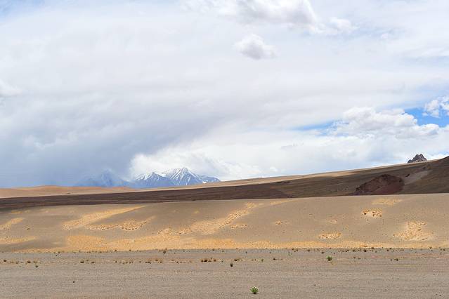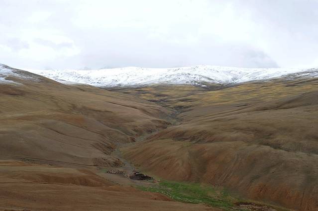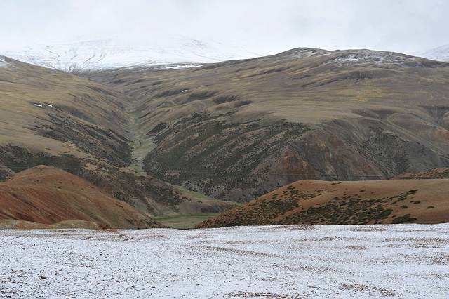 7月1日,离开扎达原路返回G219前往狮泉河。其实在扎达周围,有很多类似于古格王朝遗址的古迹,我个人是很想去,因行程路书中没有计划,只好放弃,以后再来吧!昨夜大风降温,海拔3500以上区域,积着几公分厚的雪,一路翻山越岭,雨雪纷飞,气温在零到5度,感觉有点冷。
