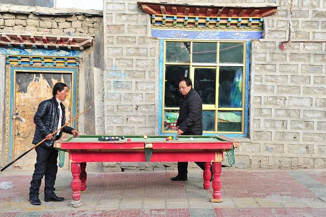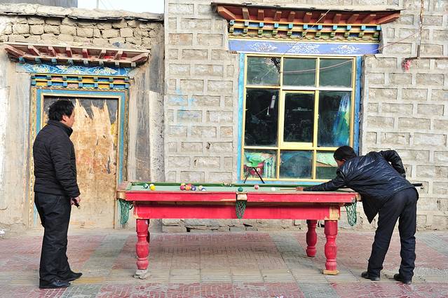 回到镇上吃早饭,现阶段西藏流行的娱乐方式这里也常见。