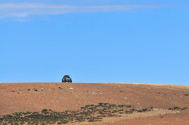 路况好,路上车也很少,路边美景去时大多已经拍摄过,我们比限速时间提前约半个小时到达狮泉河,只好远远地等在公路边。正值中午,太阳狠毒,他们都呆在车上,我一个人爬到路边的山坡上拍摄公路边的地貌。