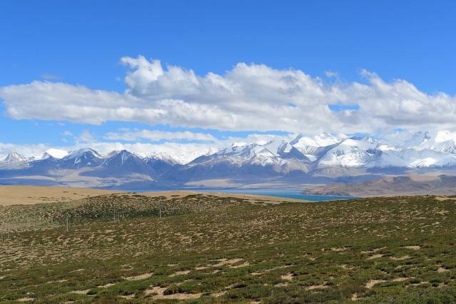 一个上坡,一排雪山映入眼帘。最高峰是那木纳尼峰,离圣湖玛旁雍错越来越近了。