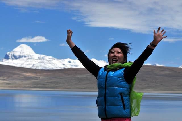为追求贴近岗仁波齐峰的效果,用长焦拍特写。
