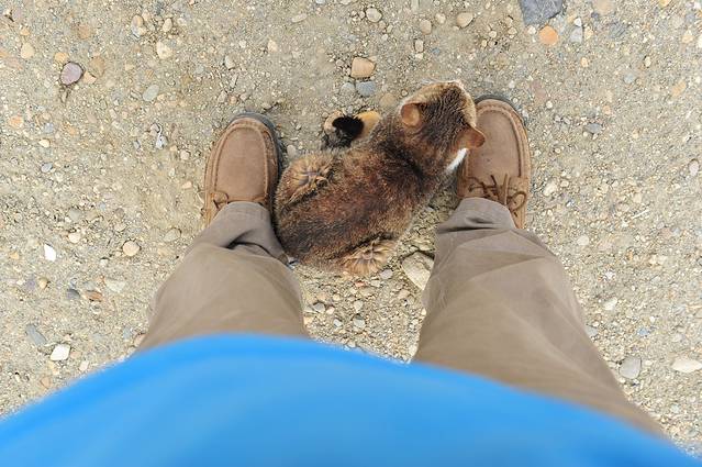 我一下车,一直猫钻到我的脚下两腿间,不肯离去。