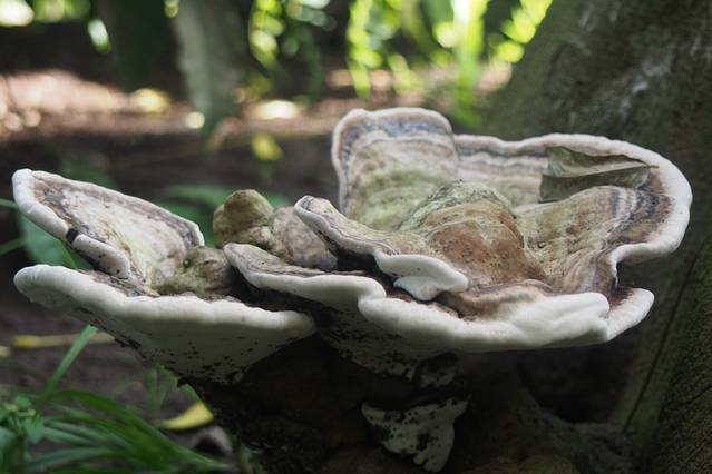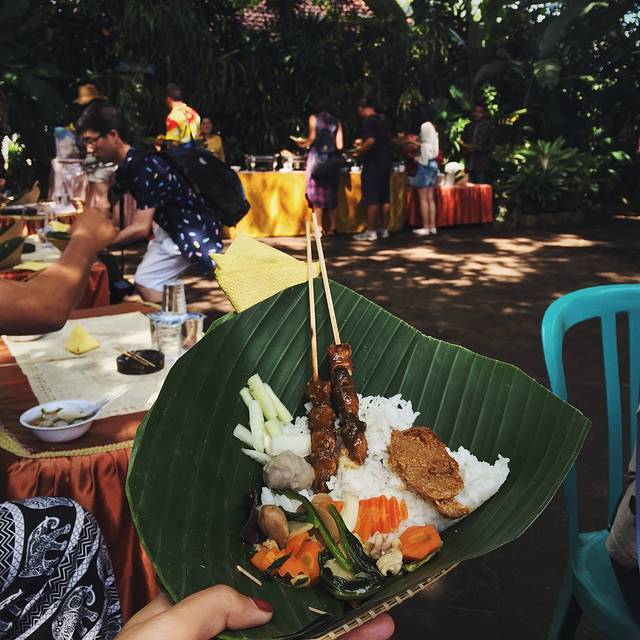 两个小时的车程,终于在抵达植物园那一刻就开始了午餐;一张芭蕉叶做成的碗,盛上香喷喷的米饭,配的是咖喱肌肉和肉串,充满着植物园里清新的气息,让人感到格外的喜欢;不过,印尼的饭菜实在难以下咽,对于一个重庆妹子的我来说,犹如让我用清水涮着生肉火锅还不给调料一样,难以接受。