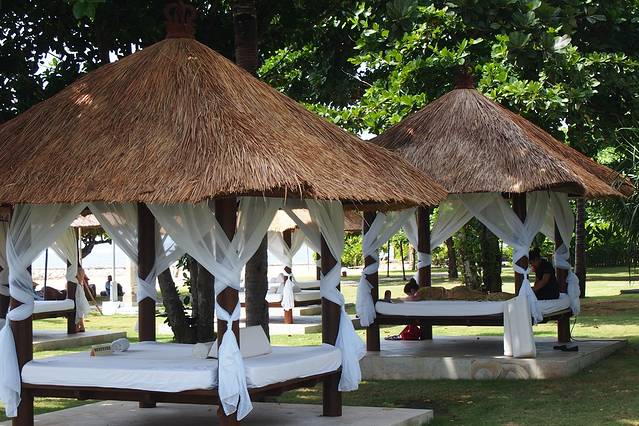 巴厘岛尽不是想象中的温情,而是热情似火;踏进酒店就感觉到舒适和暖心,服务员为我们戴上鸡蛋花,又端上冰凉的汽水,把行李送入了房间。终于,经过一天一夜的奔波和转机,疲劳在巴厘岛努沙杜瓦索菲特酒店得到了释放。