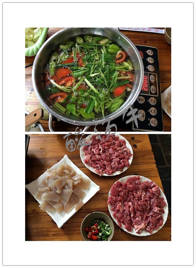 体育场对面有一家人气很火的饭店叫牛滚荡,中午选在这里用餐。点了凯里的名吃酸汤牛,要了两盘牛肉,还搭配了白菜和魔芋豆腐。我们要的清汤,牛肉非常嫩,火锅的蘸料和北方也不一样,都是红辣椒,把酸汤浇在红辣椒上面,再蘸上一块牛肉,真是回味无穷。