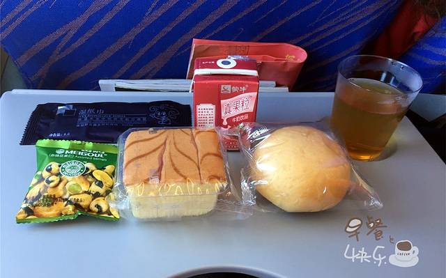 早上,打uber去机场。虽然是8点20的航班,南航还是提供了比较丰盛的早餐。有面包,虎皮蛋糕,坚果,蒙牛真果粒。
