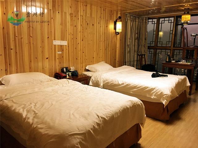 西江苗寨的客栈真的非常非常多,有选择困难症的就比较麻烦。提前在网上预定了西江嘎百福客栈的全景观景房,评价非常棒,距离观景台很近,房间内观景角度也很好。