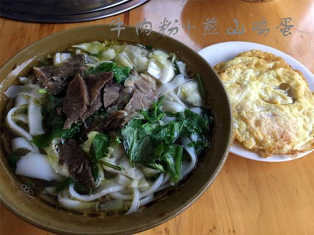 在客栈附近的一家小饭店点了早餐,煎山鸡蛋和原汤牛肉粉,味道不错。
