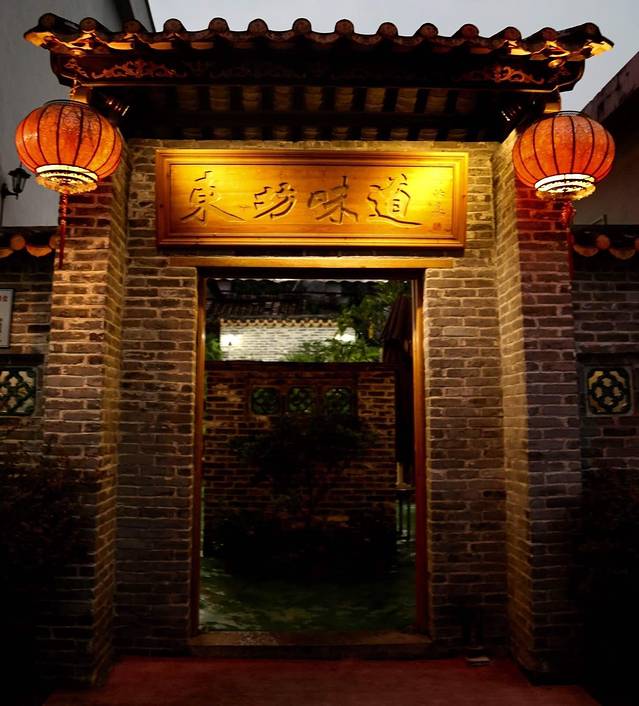顺德一直是美味佳肴的圣地,大良镇的旧寨附近有不少有特色的农家菜和私房菜。东坊味道就是其中一家。这家私房菜由几间旧砖房改建而成,大门采用了岭南水乡特有的木门搪笼结构,青砖、小花窗保留着,颇有几分古韵。