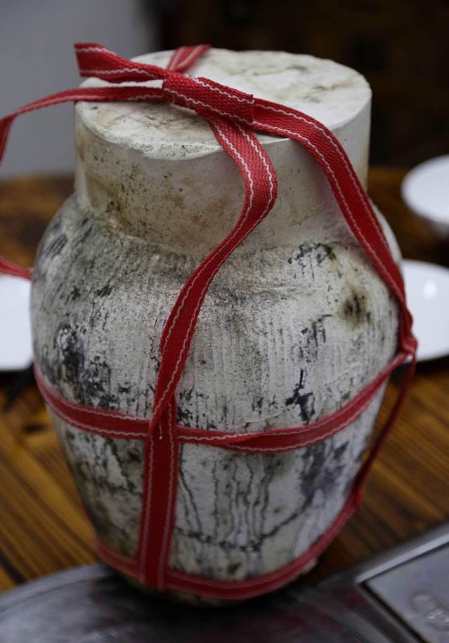 今天朋友带来了一坛老酒,用榔头撬开后酒香四溢。